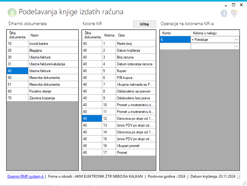 Uputstvo za korišćenje forme "Podešavanja knjige izdatih računa" u Dramin RMP System 4.0